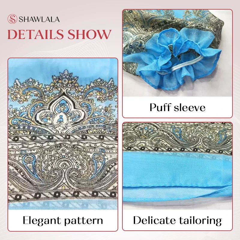 Shawlala features a premium quality silk chiffon fabric that is so lightweight, soft, breathable, and quick-drying. It offers a silky touch and supreme comfort for your all day activities.